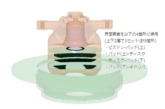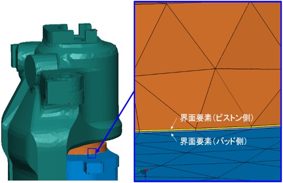 ブレーキのアセンブリモデルに用いる界面要素の拡大図を図-2に示す。
