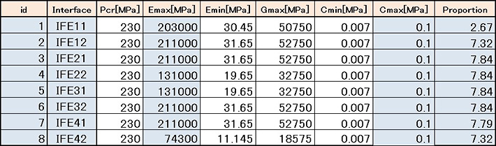 1.3で述べた界面要素に与える材料特性は、接触解析と動的解析でその扱いを変えた。
