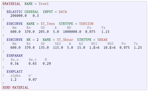 - 疲労寿命の計算に必要なS-N線図などの材料の疲労破壊特性は、PERMAS従来の材料特性データに追記します。