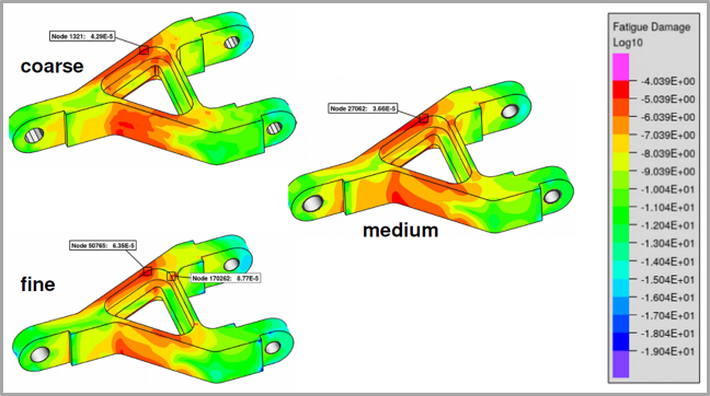 損傷度分布より、最大値には違いが現れるもののメッシュの粗密による分布傾向には大きな違いはないことが、分布結果にて確認できます。